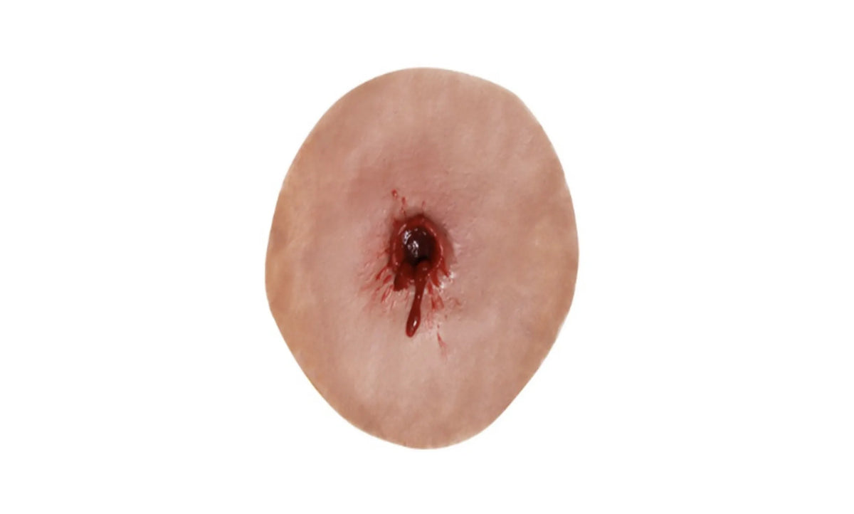 The Gunshot Entrance Wound Small is a realistic, reusable moulage model measuring 6 x 6 cm, designed for bandaging, patient care, and wound management training.