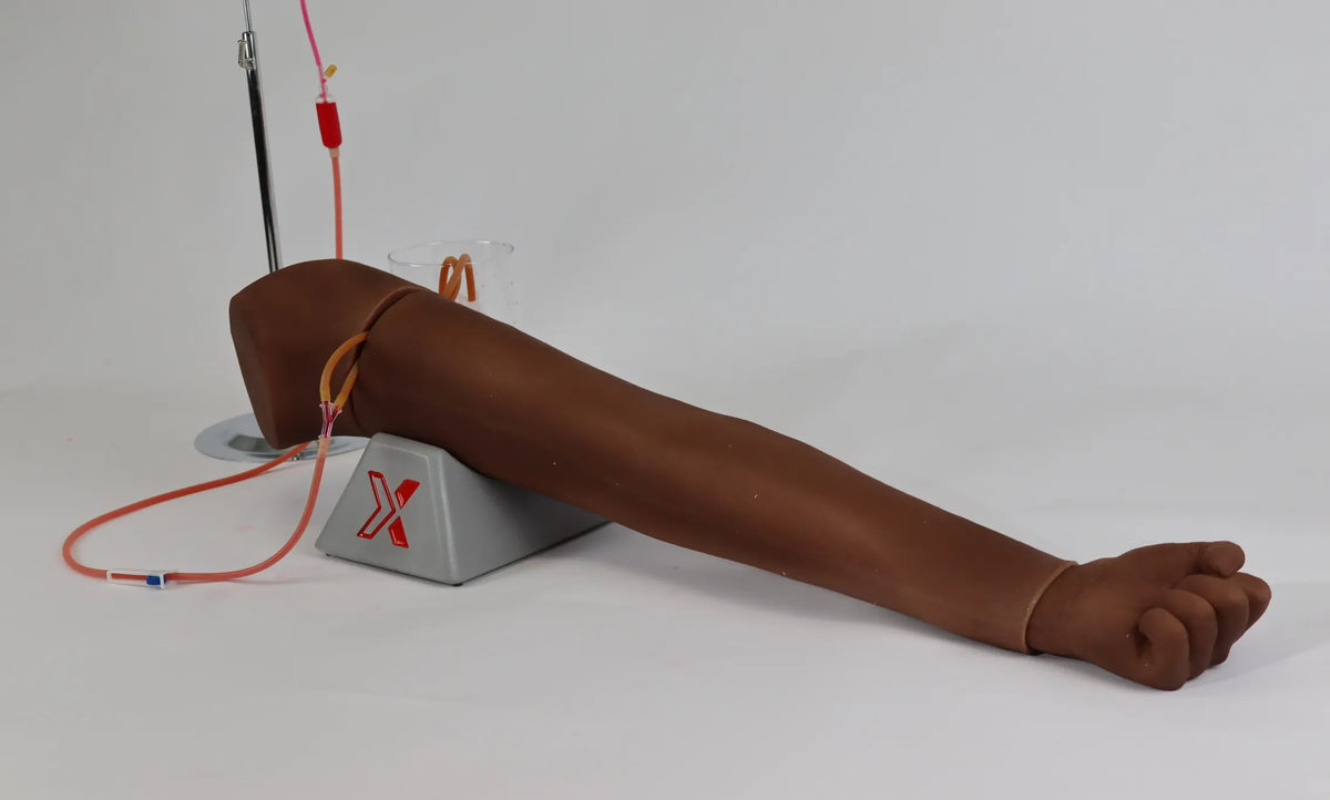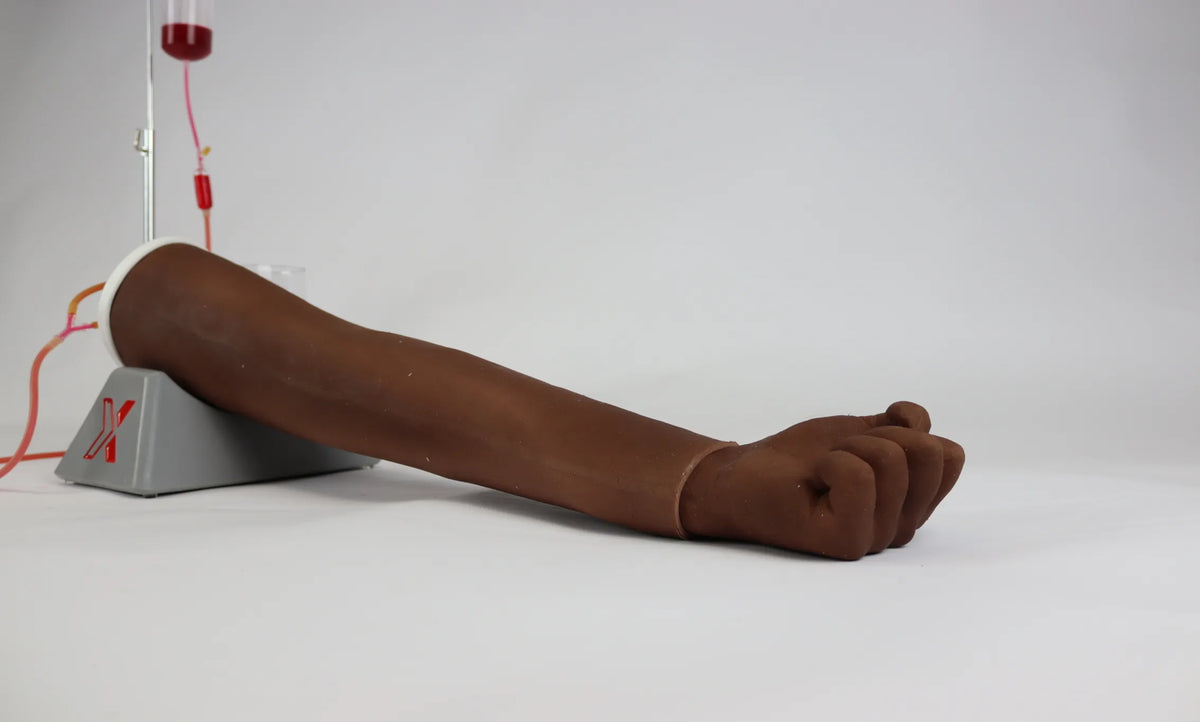 The IV Arm Simulator is a realistic, full-size training arm model designed for peripheral intravenous (IV) cannulation and blood sampling.