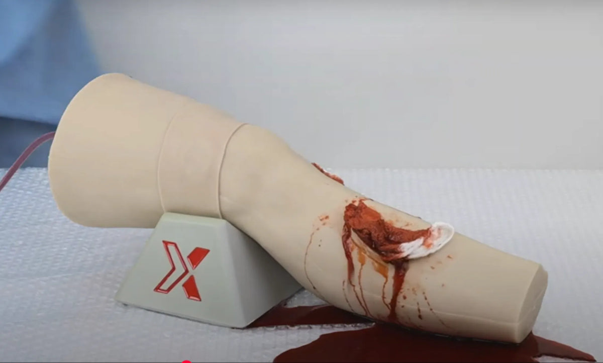 Users can practice direct pressure, gauze packing, and tourniquet application. Made with soft silicone, it simulates the feel of real human skin.